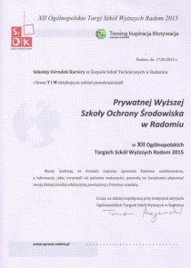 XII Ogólnopolskie Targi Szkół Wyższych Miło nam poinformować, nasz Uczelnia uczestniczyła w XII Ogólnopolskich Targach Szkół Wyższych, które odbyły się 17 marca 2015 roku w Radomiu. Serdecznie dziękujemy za zainteresowanie ofertą edukacyjną oraz odwiedzenie stoiska naszej Uczelni. |